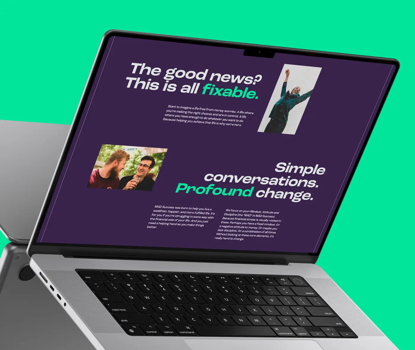 Aiming toward the Gen-Z demographic, MAD Success needed to engage visually and appeal in a way that financial institutions usually do not. It needed bold colours, down to earth language, and genuine representation in its imagery. We constructed a brand that put its messages first, leaving text uncluttered and upfront, with photography that never felt posed or fake.
